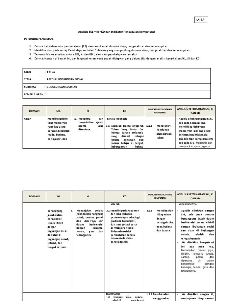 Contoh Analisis Skl Ki Kd Dan Indikator Sd / Contoh Analisis Keterkaitan Skl Ki Kd Mata Pelajaran Biologi Sma Afnan Alfaqih : Muatan karakter materi moda dan sintak model pembelajaran penilaian sumber dan media sikap: