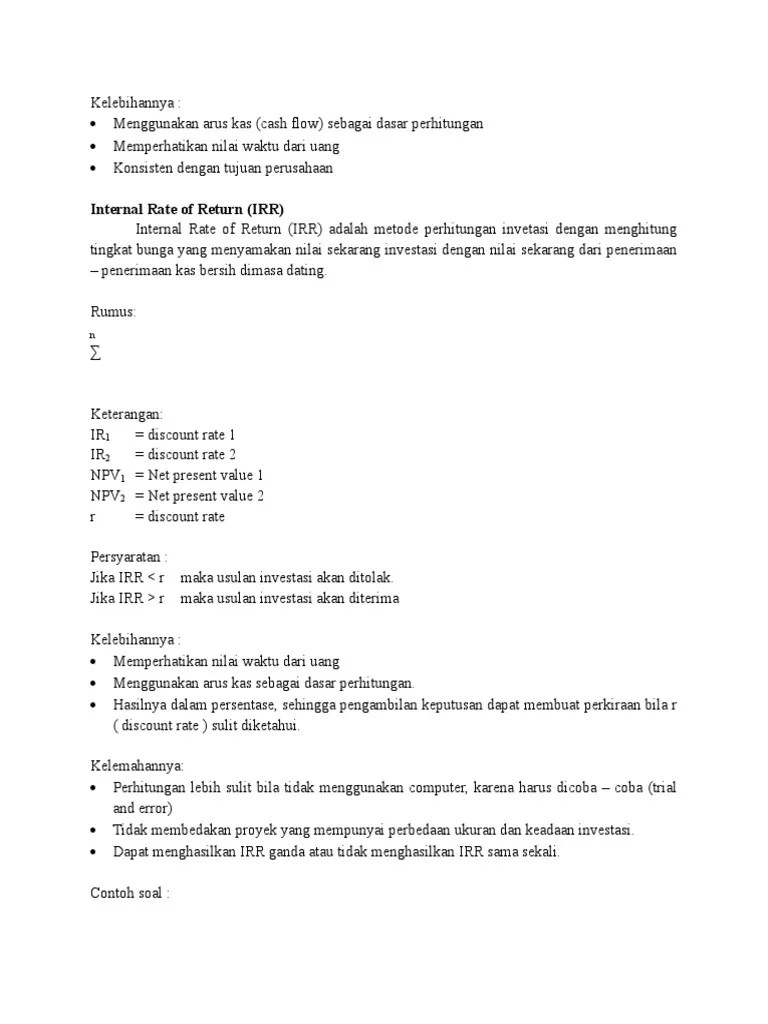 Contoh Soal Internal Rate Of Return : Contoh Soal Metode Net Present Value - Berbagi Contoh Soal - Contoh soal dan pembahasan internal rate of return (irr) aplikasi irr, arus kas.